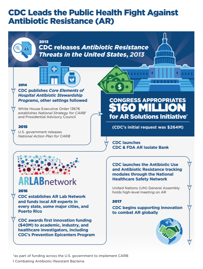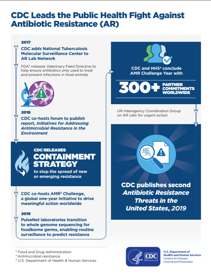 Centers for Disease Control and Prevention. (2019). U.S. action to combat antibiotic resistance. Retrieved from https://www.cdc.gov/drugresistance/us-activities.html